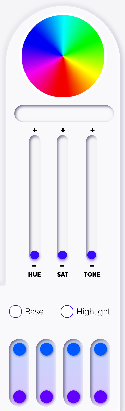 Using the color panel the stylist is able to find the perfect shade to add to any design. Add up to 8 colors to a section of hair. The 8 colors include gradating from one color to another.