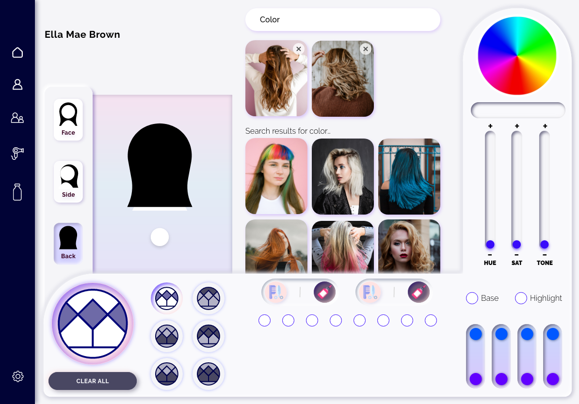 Thinking through the details for this application was extensive. Fundamentally, the challenge was designing the application in a way that requires very little input from the stylist. To innumerate, they are able to skim through a variety of options rather quickly as the goal is for the stylist to spend as little time on the app, as possible, nailing down that perfect look.